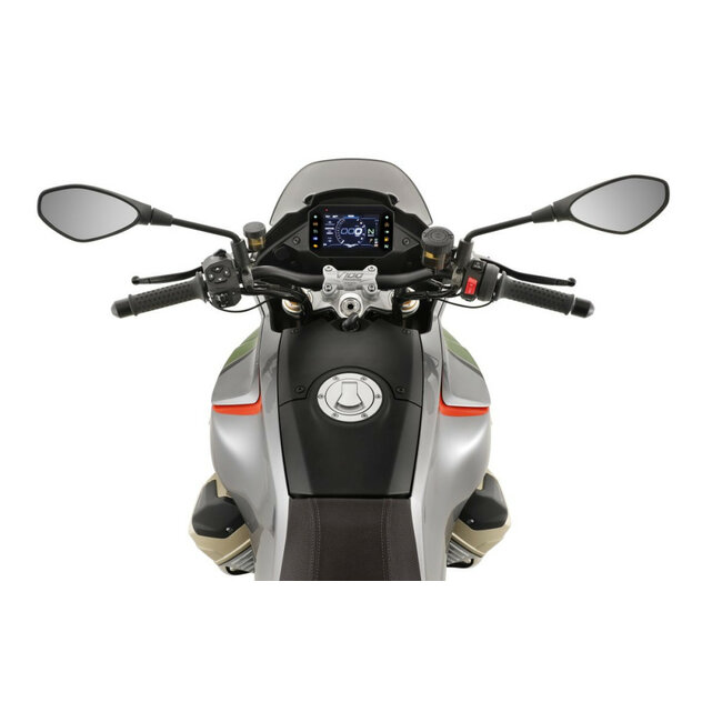 Výbava : Full LED svetlomety s DRL, náklonové svietenie, LED smerovky, ABS a Moto Guzzi Traction Control, tempomat, jazdné režimy, farebná TFT prístrojová doska, adaptívna aerodynamika, elektricky nastaviteľné plexisklo.