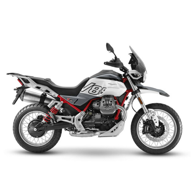 Motor o objemu 853 cm3, ktorý má rovnakú architektúru ako všetky súčasné agregáty Moto Guzzi, pôvodne predstavený v prvej verzii V85 TT. Už vtedy mal blízko k dokonalosti vďaka rozvodovému systému s valečkovými zdvihátkami a hliníkovými váhadlami alebo titánovým sacím ventilom o priemere 42,5 mm.