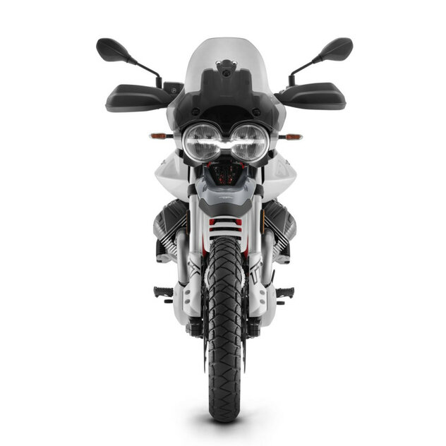 Rozšírená je tiež elektronická výbava, ktorá teraz využíva šesťosá inerciálna platforma (k dispozícii ako príslušenstvo u V85 Strada). Tento pokročilý systém vybavený akcelerometriou a gyroskopom je schopný zistiť orientáciu motocykla vzhľadom k vozovke; zaznamenáva a spracováva jazdné parametre a odosiela data do riadiacich jednotiek. Vďaka tomu je riadenie elektronických asistenčných systémov ešte jemnejšie a úplnejšie, čo umožňuje funkčnosť náklonového ABS, ktoré dokáže modulovať brzdnú silu podľa uhla náklonu, čo zvyšuje bezpečnosť. Systém ABS spolupracuje s brzdovým systémom, zloženým z dvoch oceľových predných kotúčov o priemere 320 mm, na ktorých operujú nové radiálne monoblokové strmene Brembo se štyrmi protiľahlými piestami, spojené s hlavným valcom pomocou opletených hadíc. Vzadu je dvojpiestikový plávajúci strmeň s oceľovým kotúčom o priemere 260 mm.
